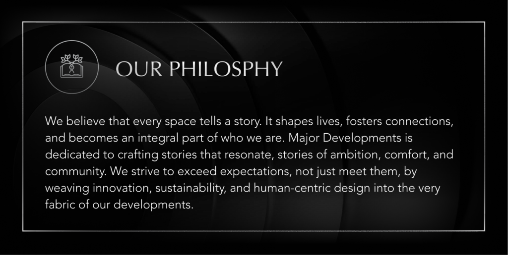 At Major Developments, we understand that true excellence lies in the meticulous attention to detail and the artistry of craftsmanship. Guided by a commitment to perfection, we believe in crafting not just homes but immersive experiences where every nuance is thoughtfully considered.